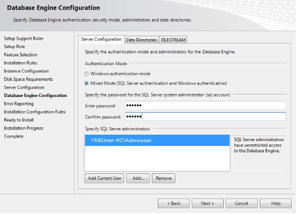 4. Add your user account to the list of SQL Server Administrators by clicking